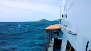 As the boat heads back to La Digue, I stand on the upper deck. I work on my balance as the boat slams over some choppy waves.