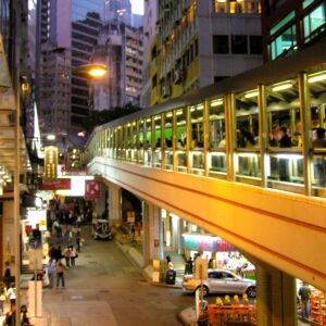 HK is the ultimate vertical city. The Mid-Levels escalator climbs from the sea to the top of the hills. Ride the Peak Tram up the mountains. To cross large roads, follow underground passageways or futuristic footbridges curving in spirals around intersections. Reach skyscraper observation decks by trekking through a maze of parking lots, elevators, and malls. To get from HK Island to Kowloon, ride the waves on a Star Ferry, drive under Victoria Harbour in a tunnel, or take the subway. Even buses and ding dings are double-deckers.