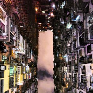 The massive complex in Quarry Bay epitomizes high-density living in a vertical city with 10,000 people in 2,234 units. The five buildings are so close they form towering canyons. In every direction, you see rising walls of homes.