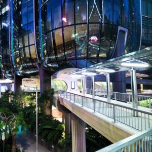 The Central Elevated Walkway is an extensive network of covered pedestrian bridges linking skyscrapers.