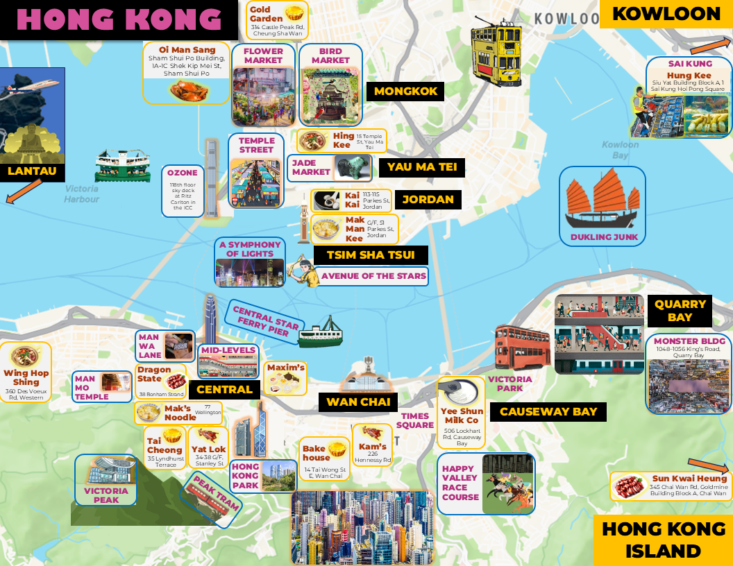 Hong Kong translates to “fragrant harbor” in Cantonese. It’s a kaleidoscopic neon metropolis that’s always in motion with frenzied traffic and a hectic pace. Its MTR subway, taxis, ferries, trams, buses, minibuses, and funicular, all encourage efficient movement. HK offers a feast for the senses and of course your stomach because Hong Kongers think about eating all day. You’ll happily bump elbows at communal tables whether you’re grabbing a meal in daylight or enjoying siu yeh (midnight snacks). Hong Kongers also love to shop till they drop at small streets and at giant megamalls.