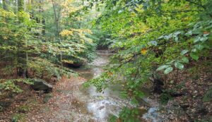 From Boston Mill Visitor Center, follow the 3-mile Buckeye Trail. After a 580-foot change in elevation, you’ll have great views of the 15-foot waterfall. The water cascades from a couple sandstone shelves.