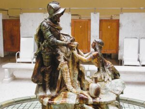 The Fordyce visitor center was the most elegant of the bathhouses, rivaling those found in Europe. Patrons lounged at bowling lanes, a billiard room, a gymnasium, and a roof garden. At the Renaissance Revival building, the massive skylight is a highlight, with the DeSoto fountain directly below.