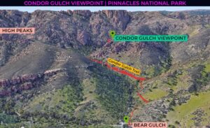 You probably won’t see condors on the Condor Gulch Trail. If you’re hoping to see condors, you should hike the High Peaks Trail. Go on this hike either as a warm-up or a cool-down to a High Peaks adventure. The highlight of this walk is looking up at the pinnacles of the High Peaks area.