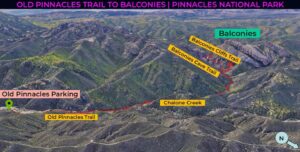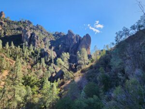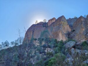 | Location: Old Pinnacles Trail and Balconies Loop, Pinnacles National Park, California Distance: 5.3 miles (out & back) Peak Elevation: 1,502 feet Elevation Gain: 515 feet Difficulty: Moderate Reminder: Bring water and a headlamp |