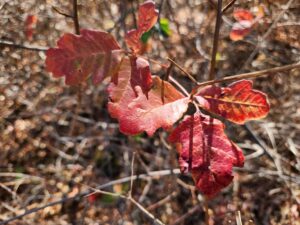 There’s a spot with tall trees and plenty of shrubs where you can hear the warbling covey of quails. Their boomerang-shaped plumage bobs up and down as they scurry across the trail. Chaparral, manzanita, barberry, and red buckwheat bushes blanket the landscape. In addition to oak trees and gray pines, you may notice some California Buckeyes. Their big round seeds have a light gray husk. Indigenous groups used the poisonous seeds to stun schools of fish for easy pickings. They also boiled the toxins away and ground the buckeyes into a flour.